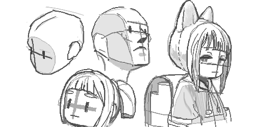 グリッドをヒントにして、ここに目を納めるという範囲を最初に描いた方がいい